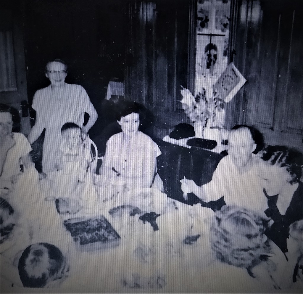 That's me, the skinny little runt with a big head, in the middle of the picture, with my grandmother standing behind me. To my left is my mother, and to her left, my uncle who everyone knew as Buster. The 3 people in my life who most made me feel safe in a world that I had learned to fear.