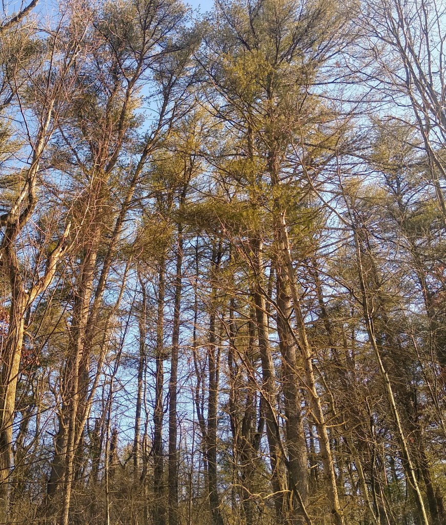 After walking for awhile, I found a spot where the pine needles were thick and a stream lay just below me. It seemed like a good place to sit for awhile and take it all in. I was facing south, watching the sunlight flickering and dancing on the ripples of the water. Somewhere in the distance, crows were conveying the latest news of the valley to one another. And then, the wind began to pick up, and the tall pines began to whisper to one another.